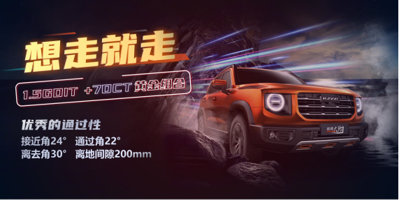 檸檬平臺(tái)帶來(lái)更加高效的燃油動(dòng)力,低排放、輕量化、高性能的1.5GDIT+7DCT黃金組合的澎湃輸出,動(dòng)力可以說(shuō)隨叫隨到。優(yōu)秀的通過(guò)性更是他的強(qiáng)項(xiàng),接近角24°、通過(guò)角22° 、離去角30°,離地間隙200mm,無(wú)論都市疾馳,還是跋山涉水,大狗都能輕松應(yīng)對(duì),是新人類說(shuō)走就走的勇氣和底氣。