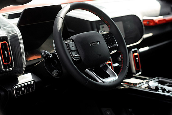 除了外部設(shè)計(jì),大狗的內(nèi)飾設(shè)計(jì)靈感也源于大自然,矩陣式出風(fēng)口形似“巨石陣”,換擋旋鈕酷似“木星星環(huán)”,嵌入式中央大屏如“湖面”一樣與操作臺(tái)融為一體,在靈動(dòng)與粗獷想融的線條之下,是大狗基于智能網(wǎng)聯(lián)系統(tǒng)的人性化設(shè)計(jì),讓你在看世界的每一個(gè)時(shí)刻,都感受到科技帶來(lái)的改變。