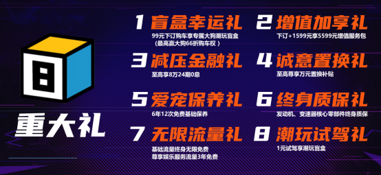 在親民定價(jià)之外,哈弗大狗還為預(yù)訂用戶帶來(lái)了超值的購(gòu)車政策。上市前預(yù)訂哈弗大狗,均可享受盲盒幸運(yùn)禮、增值加享禮(在哈弗智家APP或電商平臺(tái)購(gòu)買)、減壓金融禮、誠(chéng)意置換禮、愛(ài)寵保養(yǎng)禮、終身質(zhì)保禮、無(wú)限流量禮、潮玩試駕禮共計(jì)八重驚喜禮遇,最高折合達(dá)萬(wàn)元以上,如此極具誠(chéng)意的新寵八重禮遇,更是讓現(xiàn)場(chǎng)粉絲刷屏稱贊。與此同時(shí),京東潮玩電商節(jié)還與本次預(yù)售發(fā)布會(huì)同步上線,用戶只要參與預(yù)售活動(dòng),即可成為“潮玩盒伙人”,開啟包含各種潮牌商品的“盲盒幸運(yùn)禮”。