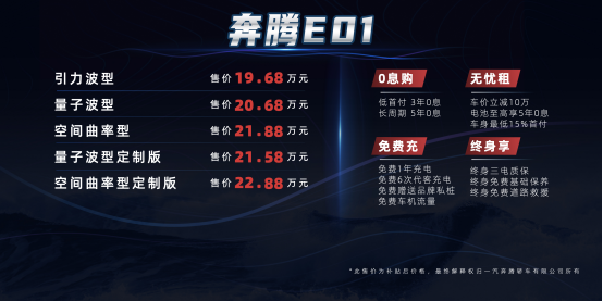 首款純電SUV奔騰E01上市,品質(zhì)給力政策走心