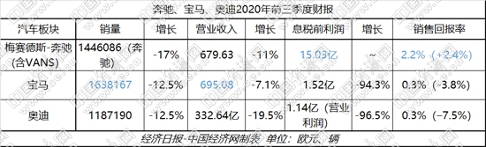 在此帶動(dòng)下,BBA汽車業(yè)務(wù)一改二季度的虧損、下滑,三季度各主要財(cái)務(wù)指標(biāo)均呈現(xiàn)明顯回升,息稅前利潤(rùn)及銷售回報(bào)率等更是實(shí)現(xiàn)由虧損轉(zhuǎn)向盈利,寶馬、奧迪在銷量上也分別達(dá)到8.6%和6.4%的同比正增長(zhǎng)。BBA前三季度各指標(biāo),也因此實(shí)現(xiàn)了一定程度的提升。