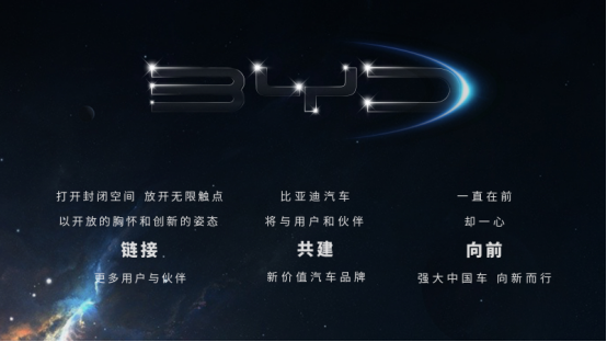 設(shè)計(jì)上,取消了橢圓型邊界,變得更加開放,并通過(guò)字母變形打開了BYD三個(gè)字母封閉空間,讓線條末端如同開放的觸點(diǎn),這意味著,比亞迪汽車愿以更開放的姿態(tài)與用戶和伙伴彼此鏈接,共同探索在智能化時(shí)代,汽車產(chǎn)品與服務(wù)的新業(yè)態(tài),共建新價(jià)值汽車品牌。
