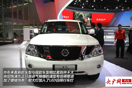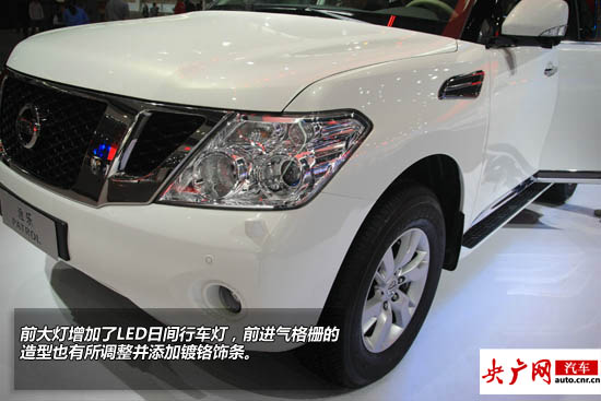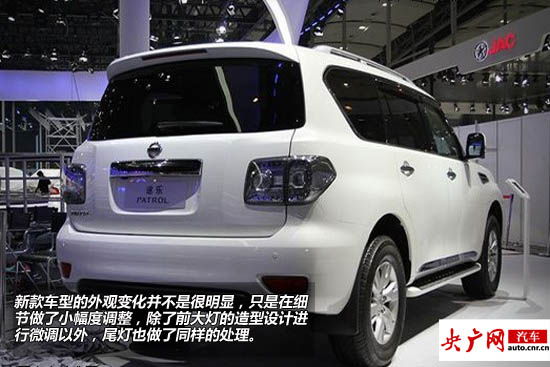 2014款日產(chǎn)Patrol途樂(lè)在此次廣州車展上正式上市,起價(jià)為119.8萬(wàn)元。作為旗艦全尺寸SUV,此次上市的第六代途樂(lè)依舊延續(xù)了其上幾代車型的寬大敦厚的特點(diǎn)。在外形方面,新款車型并沒有太大的變化,只是在細(xì)節(jié)處進(jìn)行了微調(diào)。