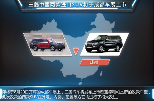 歐藍德、帕杰羅作為三菱汽車在華熱銷的SUV之一,為進一步提升兩款產(chǎn)品的競爭力,三菱汽車規(guī)劃在華推出兩款SUV的改款車型。日前,網(wǎng)通社從三菱中國官方獲悉:即將于8月29日開幕的成都車展上,三菱汽車將發(fā)布上市歐藍德和帕杰羅的改款車型。值得一提的是,此次改款的兩款SUV在外觀、內(nèi)飾、配置等方面均進行了很大改進。