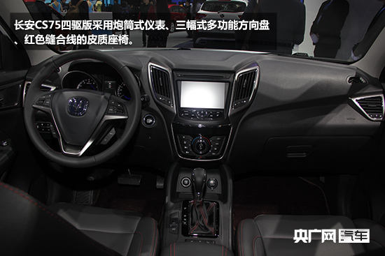 內(nèi)飾方面,長(zhǎng)安CS75四驅(qū)版采用炮筒式儀表、三幅式多功能方向盤(pán)、紅色縫合線的皮質(zhì)座椅。而檔桿后方相比兩驅(qū)版車(chē)型增加了一個(gè)在兩驅(qū)和四驅(qū)中轉(zhuǎn)換的按鈕。