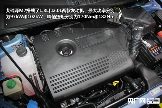 動力方面,艾瑞澤M7搭載了1.8L和2.0L兩款發(fā)動機,最大功率分別為97kW和102kW,峰值扭矩分別為170Nm和182Nm。傳動系統(tǒng),匹配5MT手動變速箱和可模擬7速手動模式的CVT變速箱。