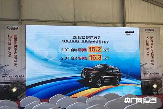4月7日,2018款哈弗H7上市,售價區(qū)間為15.2-16.3萬元,目前購買哈弗H7最高可享2萬元優(yōu)惠。