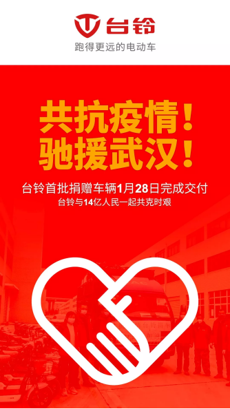 臺鈴一直高度關(guān)注疫情發(fā)展情況,集團(tuán)董事會在除夕夜召開緊急會議,決定為了保障疫情一線的醫(yī)護(hù)人員出行,臺鈴鈴基金向武漢各大抗疫醫(yī)療機(jī)構(gòu)捐贈1000輛電動車,用于支持武漢醫(yī)護(hù)人員安全出行,提高抗疫效率。