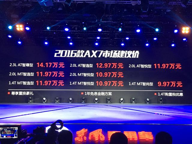 4月12日晚,東風(fēng)之夜上,2016款東風(fēng)風(fēng)神AX7車型全面升級(jí)上市,售價(jià)區(qū)間為9.97-14.17萬元。