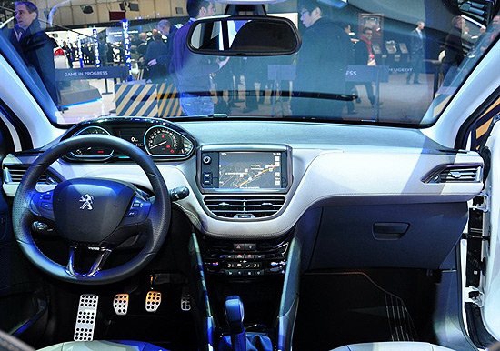 內(nèi)部裝飾上,標(biāo)致2008整體上沿用了新款標(biāo)致208的內(nèi)飾,凸起的儀表臺和多媒體系統(tǒng)板塊顯得很有立體感,配色上有所創(chuàng)新,采用了藍(lán)色邊框搭配中央數(shù)字顯示屏的設(shè)計,并搭配7英寸的中控觸控顯示屏。