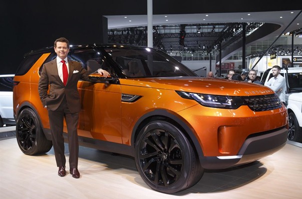 路虎全球設(shè)計總監(jiān)兼首席創(chuàng)意官哲芮勛先生與路虎發(fā)現(xiàn)Vision概念車合影