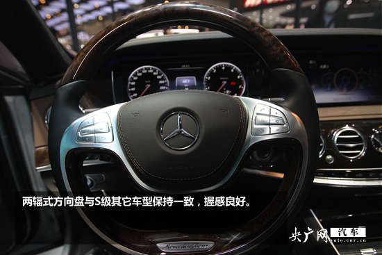 內(nèi)飾方面,奔馳全新S600L與普通版奔馳S級基本相同,座椅上的“V12”標識表明了S600L的身份,木紋材質(zhì)與淺色皮革搭配,中控臺包裹的皮革采用了菱形縫制,更顯雍容華貴。中控臺大尺寸液晶屏取代了傳統(tǒng)的儀表盤,科技感更強,這是目前全新一代奔馳S級的標配。這輛S600中間的時鐘只有個奔馳的三叉星標志,沒有配備IWC時鐘。兩輻式方向盤與S級其它車型保持一致,握感良好。奔馳S600L配置了COMAND系統(tǒng),不過沒有配備手寫輸入。