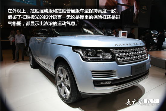 在2014年的北京車展上,路虎的旗艦車型——攬勝的混合動(dòng)力版本來到了現(xiàn)場(chǎng),這也是該車型在國(guó)內(nèi)的首次亮相。