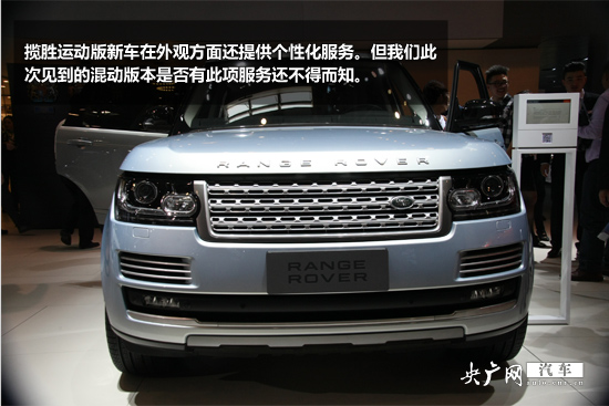 攬勝運(yùn)動(dòng)版新車在外觀方面還提供個(gè)性化服務(wù)。但我們此次見到的混動(dòng)版本是否有此項(xiàng)服務(wù)還不得而知。