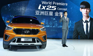 憑借ix25和金秀賢的聯(lián)袂登場,北京現(xiàn)代迅速成為本屆北京車展的焦點車企。