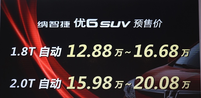 納智捷優(yōu)6 SUV正式預(yù)售價(jià)
