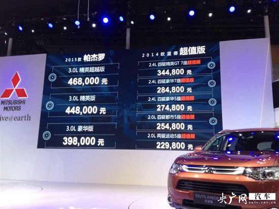 在2014年成都車展上,三菱歐藍德超值版和2015款帕杰羅正式上市,歐藍德售價區(qū)間為22.98萬元-34.48萬元;帕杰羅售價區(qū)間為39.8萬元-46.8萬元。