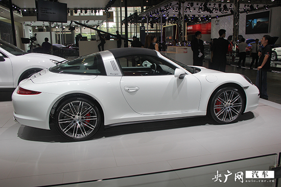 2014成都車展即將于8月29日開幕,央廣汽車前方報道團隊在9號館內(nèi)拍攝到了保時捷911 targa 4S車型。靚麗的外觀讓人一眼便能識別出這輛車,該車的很多設計有向第一代Targa致敬的意思。
