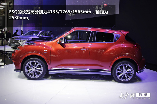 在本屆車(chē)展上,英菲尼迪全新車(chē)型ESQ正式發(fā)布。預(yù)計(jì)新車(chē)9月份上市銷(xiāo)售。新車(chē)基于日產(chǎn)Juke Nismo車(chē)型改進(jìn)而來(lái)。