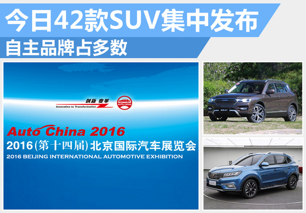 原標題:今日42款SUV-集中發(fā)布 自主品牌占多數(shù)