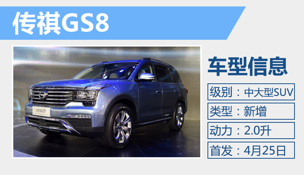 傳祺GS8是廣汽傳祺發(fā)力高端市場的第二款產(chǎn)品,新車采用7座設計,定位中大型SUV,基于C平臺打造。動力上,GS8有望搭載與GA8相同的2.0升直列四缸渦輪增壓發(fā)動機。這臺發(fā)動機由廣汽傳祺自主研發(fā),最大功率為145千瓦,最大扭矩為300牛米。新車還將提供四驅(qū)版本車型。目前在中大型SUV這一細分市場中,自主品牌并沒有太多的布局,僅有哈弗H9等產(chǎn)品,長安CS95也將于年內(nèi)上市,GS8上市后將與上述車型展開競爭。