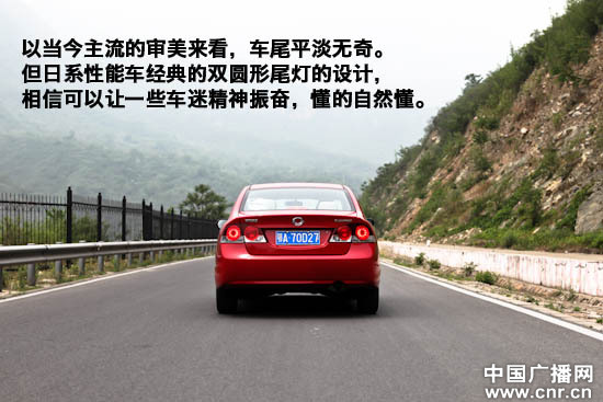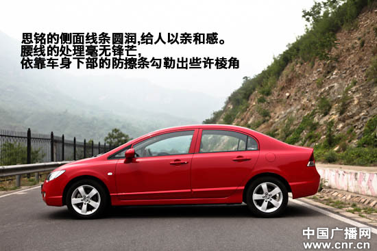 從側(cè)面看起來思銘是典型的家用車造型,對于看慣了FD2 Type-R的朋友來說,總會覺得車尾有些空落落的。好在車身套件和尾翼都很容易加裝。