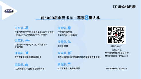 2月26日起,用戶可以在“江淮汽車APP”上進行咨詢購買。此外為回饋北京用戶對江淮新能源的關(guān)注與期盼,在預(yù)售期間交納iC5意向金,可優(yōu)先享受8重大禮。高能量、高安全、高性能和高顏值,這臺更“懂你”的高能純電轎跑iC5你值得擁有!