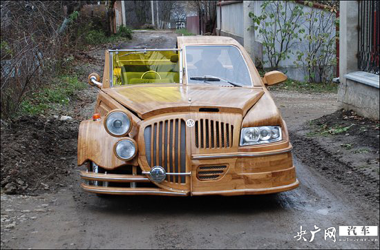 Vasyl Lazarenko是一位來自烏克蘭西部的工匠。由于女友非常喜歡坐敞篷車去兜風(fēng),而他自己又覺得硬頂車篷很實用,于是突發(fā)奇想,決定自己打造一款世界上獨一無二的“雙面車”。 這輛車的左邊是現(xiàn)代轎車的造型,而右邊則是上世紀(jì)30年代的敞篷車造型。整輛車的外形完全是靠手工將橡木拼接而成。Vasyl則花了一年多的時間才將這些木頭雕刻好并拼接在一起。