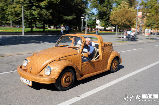 波黑人Momir Bojic用高超的木工技藝以及難以置信的耐心用橡木純手工打造了一輛精美的大眾甲殼蟲汽車。這輛汽車不僅可以觀賞,也可以像其他汽車一樣開上路,還可以加油。這輛汽車是Momir Bojic在妻子Nada的協(xié)助下一起在自家花園中完成的。這輛車中的部件都用木頭制成,比如刮雨器,換擋桿,踏板,后視鏡,尾燈,方向盤,儀表盤,大眾汽車的標(biāo)志甚至車上的時(shí)鐘和收音機(jī)天線。更令人不可思議的是這輛橡木甲殼蟲的車身用一片片切成瓦片一樣的橡木制成,就像Momir Bojic家鄉(xiāng)波黑的屋頂一般.