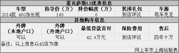 雷克薩斯LS現(xiàn)優(yōu)惠讓利6萬(wàn)元 購(gòu)車有現(xiàn)車