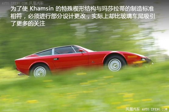 藍(lán)旗亞Stratos和蘭博基尼Urraco(這兩款車均為Gandini的作品)同樣采用了瑪莎拉蒂Khamsin的風(fēng)格。但Khamsin搭載了一臺(tái)強(qiáng)勁的雙凸輪軸V8前置發(fā)動(dòng)機(jī),而Urraco(V8)和Stratos(V6)在相對更小的車輛上采用了后置發(fā)動(dòng)機(jī)設(shè)計(jì)。為了使Khamsin的特殊楔形結(jié)構(gòu)與瑪莎拉蒂的制造標(biāo)準(zhǔn)相符,必須進(jìn)行部分設(shè)計(jì)更改,實(shí)際上卻比玻璃車尾吸引了更多的關(guān)注。