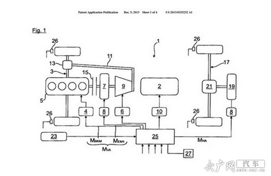 從專(zhuān)利申請(qǐng)的草圖來(lái)看,電動(dòng)四驅(qū)系統(tǒng)將會(huì)提供動(dòng)力給后軸,可以應(yīng)用于純電動(dòng)、油電混合或plug-in油電混合車(chē)款上,另外國(guó)外媒體相信還將包括可回收動(dòng)能的制動(dòng)系統(tǒng)。