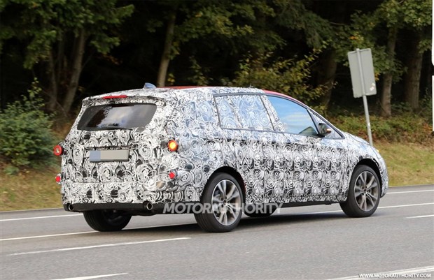 近日,海外媒體曝光了一組寶馬2系A(chǔ)ctive Tourer七座版本的諜照,新車或?qū)⒚麨?系Gran Tourer。預(yù)計(jì)將年底正式發(fā)布。