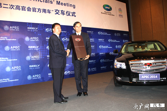 2014年亞太經(jīng)合組織第二次高官會(huì)將于5月份在青島召開,4月29日,吉利汽車正式向2014年APEC會(huì)議青島市籌委會(huì)交付高官會(huì)官方指定用車,而2014年APEC高官會(huì)議第一次在寧波召開時(shí)也選擇了吉利帝豪轎車作為官方用車。