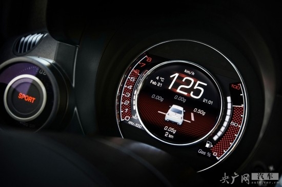 新款菲亞特500 Abarth版本采用了全新的儀表盤和中控臺(tái)。在常規(guī)狀態(tài)下,駕駛員可以通過這個(gè)顯示屏了解車輛速度、巡航里程和油耗等信息。當(dāng)車輛切換到運(yùn)動(dòng)模式時(shí),新的7英寸TFT顯示器會(huì)在顏色和顯示內(nèi)容上有著明顯的變化。另外,廠家針對(duì)杯架也進(jìn)行了從新設(shè)計(jì),并添加了新的USB端口(集成于收音機(jī))。