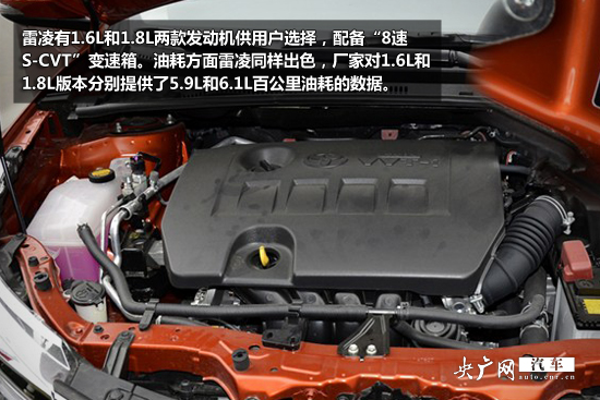 配備“8速S-CVT”的雷凌在油耗方面同樣出色,廠家對(duì)1.6L和1.8L版本分別提供了5.9L和6.1L百公里油耗的數(shù)據(jù)。