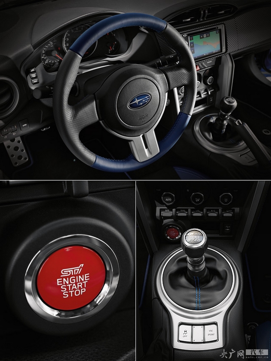 內(nèi)飾部分,這款特別版車型在一些細(xì)節(jié)上提供了更為精細(xì)的修飾。座艙中使用了Alcantara面料與真皮的混搭設(shè)計(jì),另外在一些地方還采用了碳纖維覆蓋件裝飾;鸺t色的印有STI字樣的一鍵啟動(dòng)按鈕非常顯眼,有一種蓄勢(shì)待發(fā)之感。