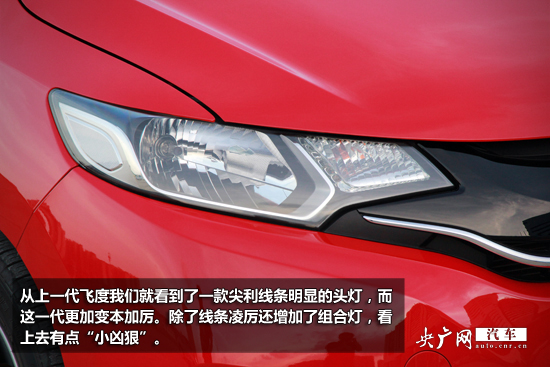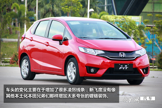 車頭的變化主要在于增加了很多凌厲線條,并且謝天謝地,新飛度沒有像其他本土化本田兄弟們那樣增加太多夸張的鍍鉻裝飾。