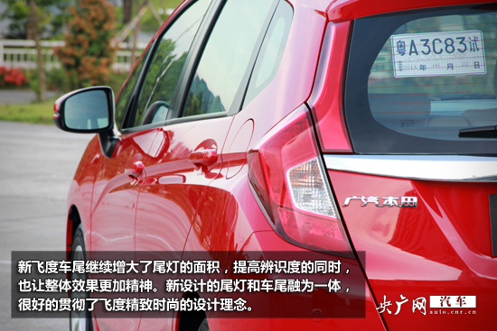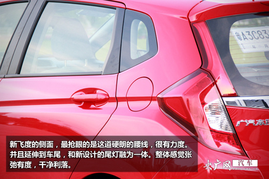 新飛度的側(cè)面,最搶眼的是這道硬朗的腰線,很有力度。并且延伸到車尾,和新設(shè)計(jì)的尾燈融為一體。整體感覺張弛有度,干凈利落。