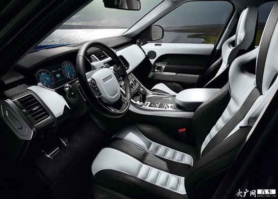 內(nèi)飾部分,新車內(nèi)部造型與攬勝運動版基本保持一致,采用黑白相搭配的配色方案,中控臺采用了碳纖維飾板進行裝飾,并配備印有SVR專屬標(biāo)識的運動座椅。