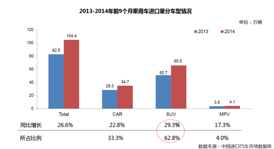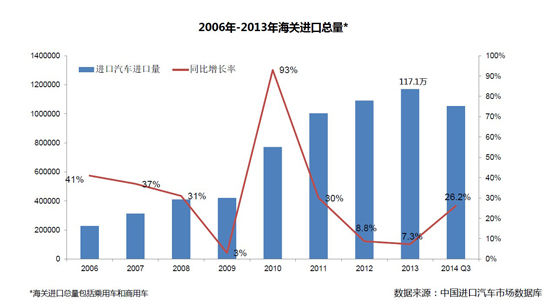 央廣汽車訊(李尚) 據(jù)國(guó)機(jī)汽貿(mào)的統(tǒng)計(jì)數(shù)據(jù)顯示,2014年前三季度累計(jì)進(jìn)口量達(dá)到105.3萬(wàn)輛,同比增速反彈到26.2%,月均進(jìn)口量超過10萬(wàn)輛,高供給局面再次形成。