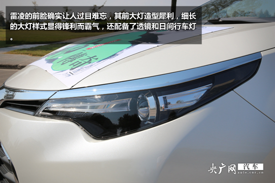 雷凌的前臉確實(shí)讓人過目難忘,其前大燈造型犀利,細(xì)長的大燈樣式顯得鋒利而霸氣,還配備了透鏡和日間行車燈。