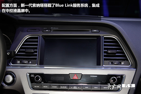 配置方面,新一代索納塔搭載了Blue Link服務(wù)系統(tǒng),集成在中控液晶屏中,同時,這款新車還配備了座椅通風(fēng)、加熱、方向盤加熱系統(tǒng),電子手剎和電動遮陽簾也倍顯檔次。