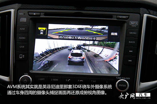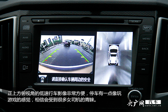 雖然內(nèi)飾設(shè)計樸實,但絕對稱得上內(nèi)有乾坤。亮點就在于日產(chǎn)的亮點技術(shù)AVM系統(tǒng),也就是360度俯視角泊車影像系統(tǒng)。沒錯這套系統(tǒng)我們在英菲尼迪的SUV車型上經(jīng)常見到,它通過全車四周的攝像頭將車外影像合成為一個畫面,相當(dāng)于從車頂俯瞰車身,大大提升了駕駛員對于狹小空間通過性的判斷。這是一個相當(dāng)實用的設(shè)計,不過全車系配置目前還沒有公布,AVM系統(tǒng)配備到哪些價位的車型還不得而知。