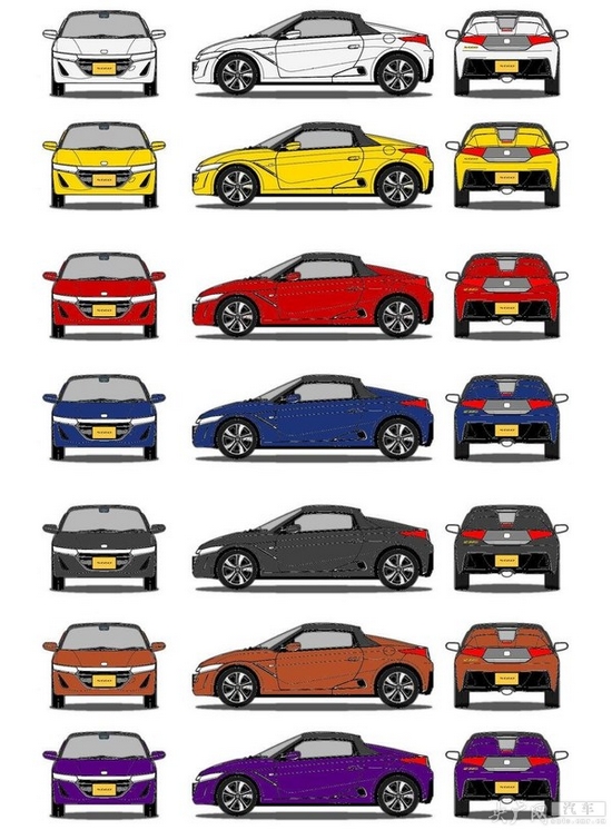 此外,本田S660有紅,橙,黃,紫等多款顏色可選。外媒還爆料道,本田S660為本田BEAT的繼任者。本田BEAT產(chǎn)于1991年-1996年,是本田創(chuàng)始人本田宗一郎親自監(jiān)督制造的最后一款車型。