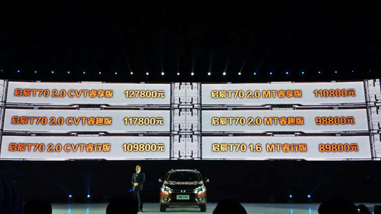 啟辰T70正式上市 售價8.98-12.78萬