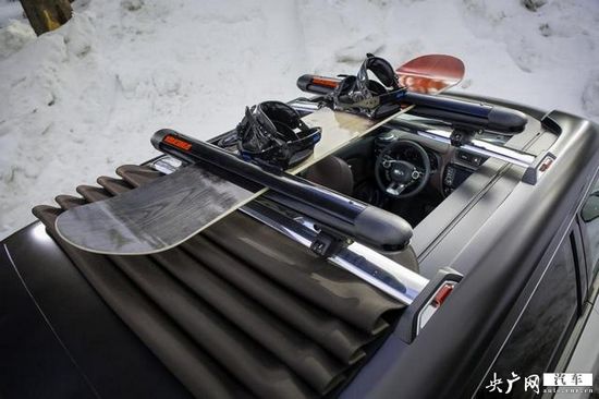 此外,該車(chē)采用了可伸縮防雨的帆布車(chē)頂以及鋁制防滑板。此外,新車(chē)還配備了洪黑相間的鋁合金輪轂外加245/45R19倍耐力雪地輪胎。
