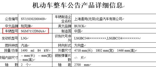 別克VERANO或定名為威朗 動力信息曝光