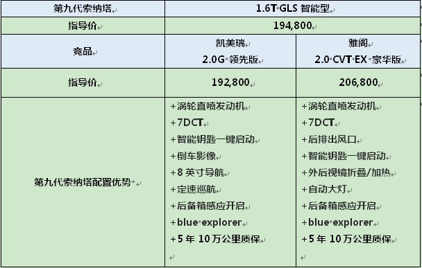 在20萬這個(gè)區(qū)間,第九代索納塔1.6T GLS智能型將會直面凱美瑞2.0G領(lǐng)先版和雅閣2.0 CVT EX 豪華版。三款產(chǎn)品在價(jià)格上非常接近。在同等的價(jià)格基礎(chǔ)上,第九代索納塔在動(dòng)力、配置和服務(wù)的角度綜合考量,價(jià)值要高出兩款日系車2-3萬元的空間,力壓同級主流產(chǎn)品,當(dāng)之無愧成為價(jià)值旗艦。