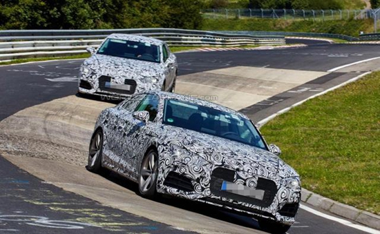 從諜照上看,全新奧迪A5和S5車型在設計上強調車輛的運動性,車身線條更加流暢,采用了重新設計的前大燈和保險杠,并保留了奧迪汽車經典的“大嘴式”散熱格柵格柵。兩款車型最大的不同在于車身尾部,全新奧迪S5運動版采用了左右分立四排氣尾喉,而奧迪A5則采用了雙排氣尾喉。